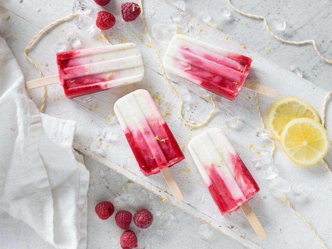 Speedy-frozen yoghurt with? raspberries and white chocolate